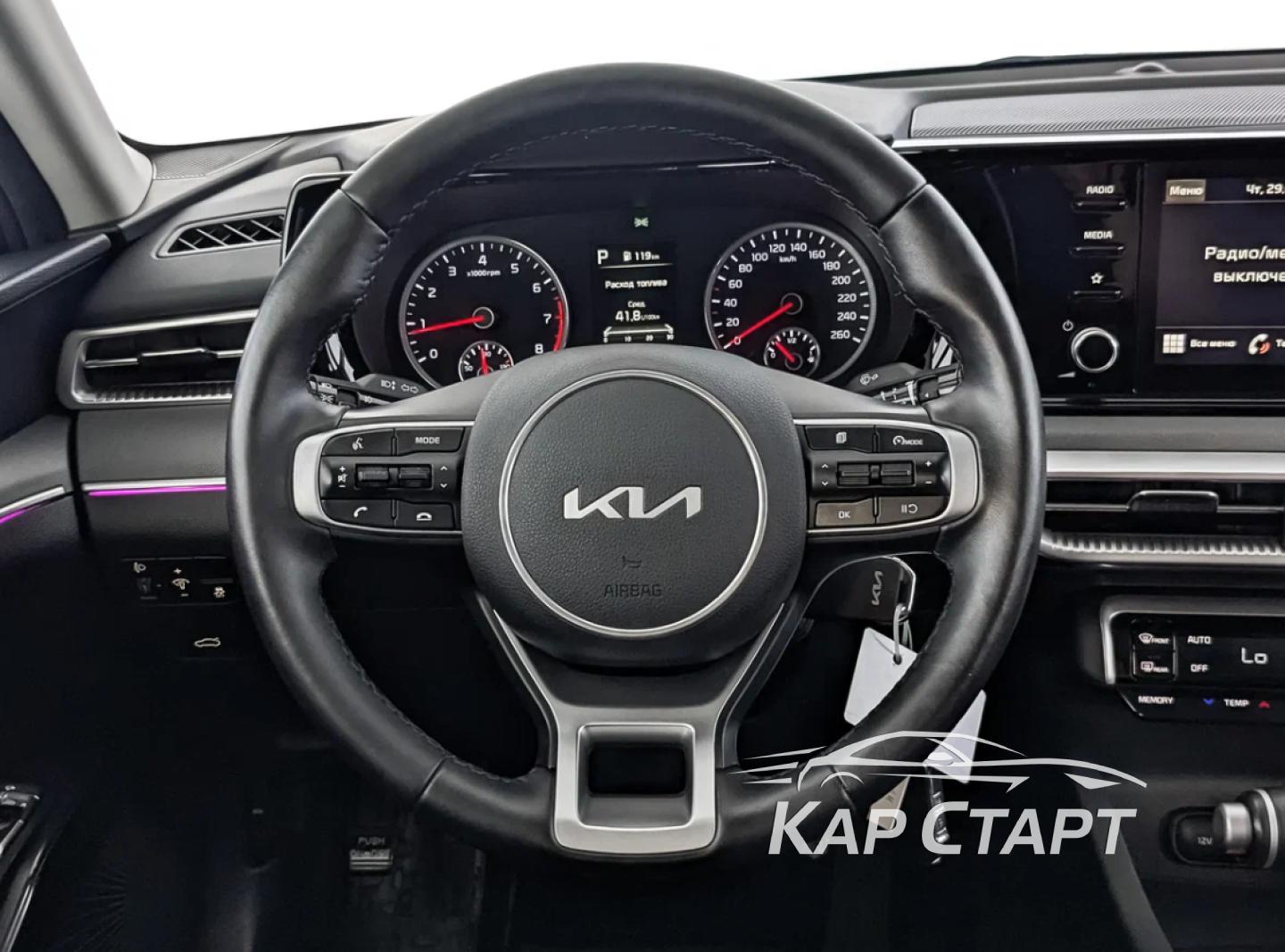 В продаже автомобиль с пробегом Kia K5 III, седан, 2 л (150 л.с.), бензин, КПП автоматическая, комплектация Premium, 2023 год, пробег 57 км